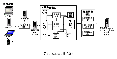 K/3.net系統(tǒng)通過(guò)數(shù)據(jù)訪問(wèn)模型以支持多種數(shù)據(jù)庫(kù);通過(guò)對(duì)象構(gòu)造模型支持對(duì)象重構(gòu),實(shí)現(xiàn)系統(tǒng)的可擴(kuò)充性;通過(guò)系統(tǒng)外部訪問(wèn)支持多系統(tǒng)的統(tǒng)一認(rèn)證,從而在設(shè)計(jì)層次保證系統(tǒng)業(yè)務(wù)目標(biāo)的實(shí)現(xiàn)。