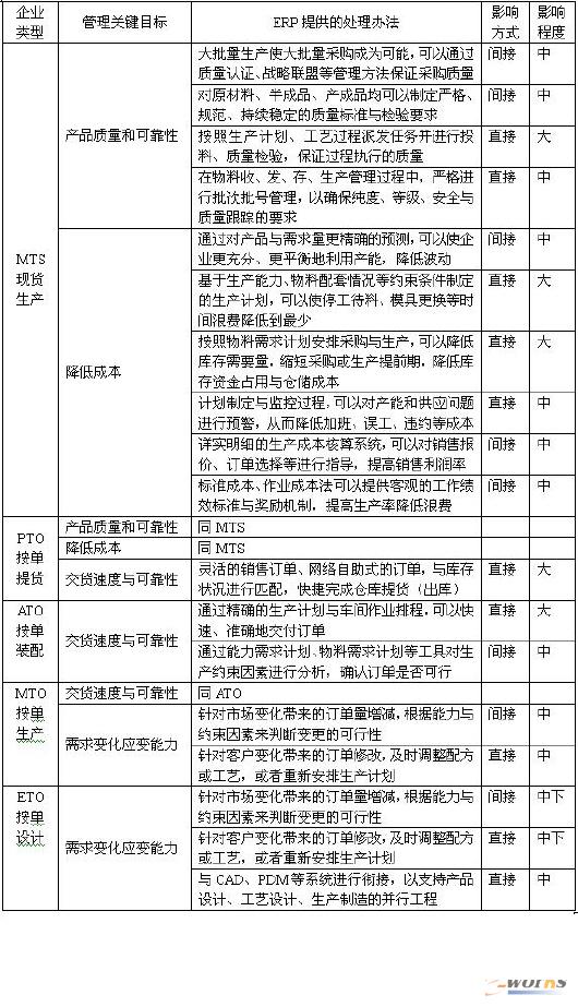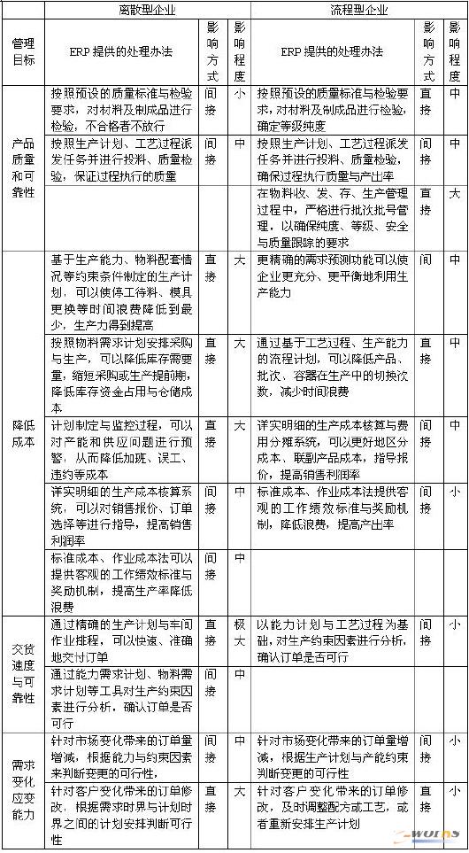 表二:ERP為不同工藝特點企業生產管理帶來的幫助與改善