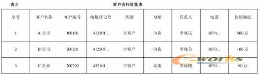 這樣每個準備客戶信息的人,都知道客戶資料應該包括:客戶名稱、編號、納稅登記號、地址、聯系人、電話和信用額度等數據項,這樣可以保證數據的完整與一致性,同時也提高了數據輸入的效率與效果。