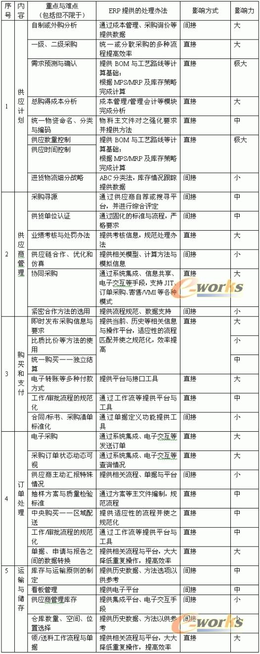 表二:ERP能夠為供應管理帶來的幫助與改善
