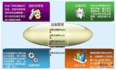 在生產管理方面,我們強化了班組管理,生產現場的數據的采集,比如說鋼瓶的管理,壓力空氣的管理,這都是現場安全的管理,設備的管理。設備的管理在流程行業至關重要,因為流程行業都是連續生產的,如果設備停車了,除了影響生產,還會造成裝置當中的一些物料浪費,造成管道的擁堵,給生產帶來巨大的麻煩。