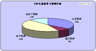 e-works調(diào)查表明,2004年中國制造企業(yè)已由原來被動接受ERP廠商的理念灌輸逐漸過渡到能夠理性選擇ERP系統(tǒng),制造企業(yè)對ERP的應(yīng)用預(yù)期變得更加理性。35%和8%的應(yīng)用ERP的制造企業(yè)認(rèn)為ERP系統(tǒng)的實施達(dá)到或超過了預(yù)期,但仍有45%的企業(yè)認(rèn)為低于預(yù)期,12%的企業(yè)認(rèn)為遠(yuǎn)低于預(yù)期。總體來說,中國制造企業(yè)對ERP應(yīng)用的滿意度較2003年有一定增長。