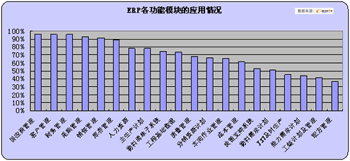 圖4. 2004年中國制造企業(yè)應(yīng)用ERP功能模塊的情況