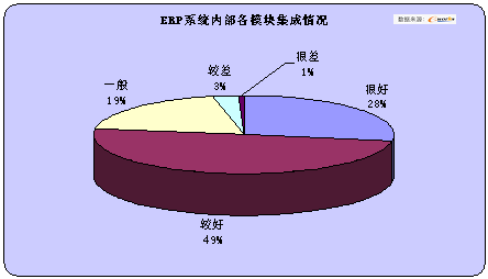 隨著軟件成熟度的增加,以往反映的ERP內(nèi)部模塊之間的集成度較差的情況在2004年有很大的改觀,28%的中國制造企業(yè)認(rèn)為公司所使用的ERP系統(tǒng)各模塊之間的集成很好,49%的企業(yè)認(rèn)為集成較好,僅有3%和1%的企業(yè)認(rèn)為較差與很差,這反映出國內(nèi)外ERP軟件供應(yīng)商在軟件技術(shù)水平方面有了明顯提高。