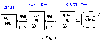 本質(zhì)上B/S也是一種C/S,它是由傳統(tǒng)的二層C/S結(jié)構(gòu)發(fā)展而來的三層C/S結(jié)構(gòu)在web上的應(yīng)用,即瀏覽器/Web/數(shù)據(jù)庫服務(wù)器結(jié)構(gòu)的三層結(jié)構(gòu)。三層的B/S體系結(jié)構(gòu)是把二層的C/S結(jié)構(gòu)的客戶事務(wù)處理模塊從客戶機(jī)的任務(wù)中分離出來,由單獨(dú)的一層來負(fù)擔(dān)其任務(wù),把負(fù)荷均衡的分配給了Web服務(wù)器,這樣給客戶機(jī)的壓力大大減輕了,于是原來兩層的c/S變成了三層的B/S結(jié)構(gòu),這種三層體系結(jié)構(gòu)如下圖: