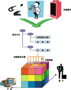 上文中我們關(guān)注的都是盈利分析中和銷售直接相關(guān)的收入、成本和費(fèi)用等,我們稱之為直接損益。但是如果只分析這些內(nèi)容,分析就只能到毛利為止了。事實(shí)上很多時(shí)候我們希望看到包含公司間接費(fèi)用在內(nèi)的凈利潤(rùn)分析。在ERP系統(tǒng)中,間接費(fèi)用代表不能直接認(rèn)定到市場(chǎng)細(xì)分上的費(fèi)用,譬如公司辦公大樓的折舊,公司管理和財(cái)務(wù)人員的工資,書報(bào)資料費(fèi)等諸如此類的費(fèi)用。ERP中通過(guò)成本中心模塊管理它們的支出。在月末,這些匯總后的間接費(fèi)用被分?jǐn)偟搅耸袌?chǎng)細(xì)分上。ERP中提供了專門的分?jǐn)偣ぞ撸芾砣藛T只需定義規(guī)則,系統(tǒng)會(huì)自動(dòng)地完成分?jǐn)偂D4中,我們以一個(gè)三維的魔方代表市場(chǎng)細(xì)分;事實(shí)上正如上文所指出的市場(chǎng)細(xì)分可以是更多維的。向成千上萬(wàn)的市場(chǎng)細(xì)分分?jǐn)傞g接費(fèi)用,也只有借助ERP系統(tǒng)才能完成。