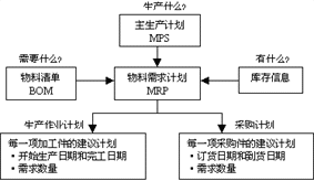 MRP的基本任務是:⑴從最終產品的生產計劃(獨立需求)導出相關物料(原材料、零部件等)的需求量和需求時間(相關需求);⑵根據物料的需求時間和生產(訂貨)周期來確定其開始生產(訂貨)的時間。