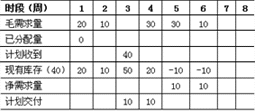 表1 產品A的需求量計算(產品A,提前期=2,批量=10)
