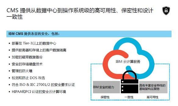 而且這四個場景,IBM在全球都有了成功案例。那么何時CMS在中國也有相應的成功案例?IBM選擇了和世紀互聯(lián)展開戰(zhàn)略合作,9月23日CMS已經(jīng)在中國正式上線。世紀互聯(lián)云集成與合作部總經(jīng)理王鵬表示,雙方將優(yōu)勢互補,其中,世紀互聯(lián)提供專門的軟硬件運維,合股及運營風險把控,客服支持,本地化商務運營以及市場營銷與銷售。