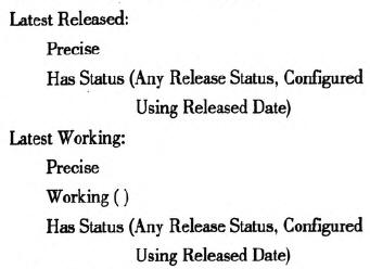 一般比較常用的版本規則包括Latest Released、Latest Working、Any Status:Working等,另外,用戶也可以根據需要自行定義版本規則。