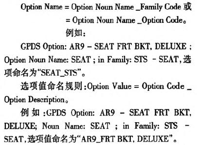 第一步創建選項及其默認值,首先創建該車型VAS特有的選項代碼,然后根據產品配置表創建PDS的選項代碼;選項代碼創建完成之后,就需要為其創建默認選項值。一定要注意選項及其選項值的命名必須遵循其命名規則,且選項信息必須定義在VAS的最頂層節點上。