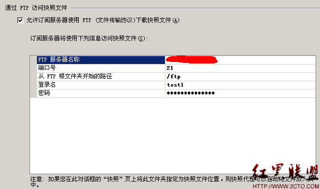 在創建好的發布服務器上面,點右鍵,屬性,在ftp快照中,填入上面創建的ftp帳戶信息,FTP名稱,填入服務器的IP或者域名,如下圖: