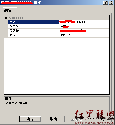 建立服務器端別名。在SQL Server配置管理中,點“SQL Native Client配置”-> “別名”,新建別名,名稱填寫服務器的名稱,端口和服務器地址根據實際情況填寫,如下圖: