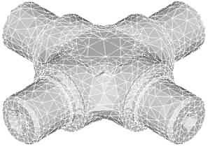 以上說明各公司的有限元軟件都能獨立完成有限元分析任務。當然,上述各種軟件還提供了與多種CAD軟件的接口。一般來說,有限元軟件的建模功能不如專門的CAD軟件強大。只有將他們結合起來使用才能更好地發揮各自的功能。筆者在分析汽車傳動裝置零件十字軸的彎曲強度時,采取的路線是:先由Pro/E建立十字軸的幾何模型并完成網絡劃分,并以ANSYS文件格式.ans輸出模型,然后由ANSYS讀入該模型并完成后續分析。圖1為由Pro/E建模并劃分網格的十字軸模型。當然,ANSYS也可直接讀入Pro/E的.prt文件,網格劃分及有限元分析的后續任務都由ANSYS完成。