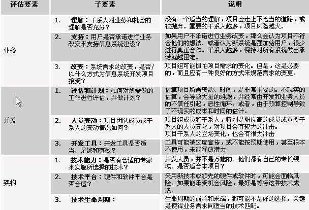 表1:某IT開(kāi)發(fā)項(xiàng)目的評(píng)估要素