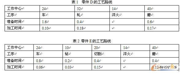 能力清單的數據來自于物料清單和工藝路線。假定現在要為產品X作粗能力計劃。X的物料清單表明,X由零件A、零件B和子裝配件C各1件構成,而子裝配件C由零件D和零件E各1件構成。工藝路線表明,零件D的加工要經過4個中作中心,零件E的加工要經過5個中作中心。圖1是產品X的物料清單。表1和表2分別是零件D和零件E的工藝路線。我們要構造子裝配件C的能力清單。零件D和零件E的提前期都是1個時區。