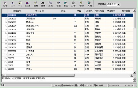 根據用戶選擇的物料顯示其指定成本類型的各成本項目的值,并且用戶可以增加、修改、刪除成本資料,用戶可以選擇部份物料將其成本復制為另一類型的成本。但用戶不能刪除標準成本和凍結成本資料,當財務核算系統啟用后用戶不能修改標準成本資料。
