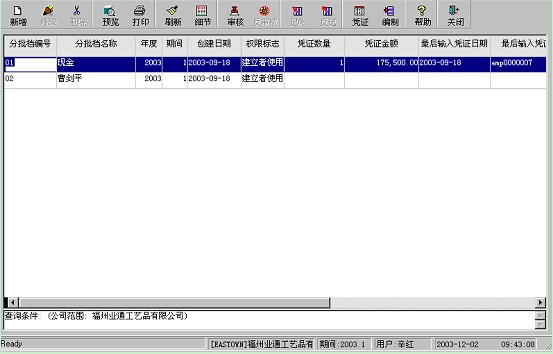 當總賬系統在參數中已設定使用分批檔,則對分批檔中的憑證在此進行處理地。分批當的使用僅指總賬系統。無論總賬是否啟用分批文件其它財務子系統不執行行此功能。